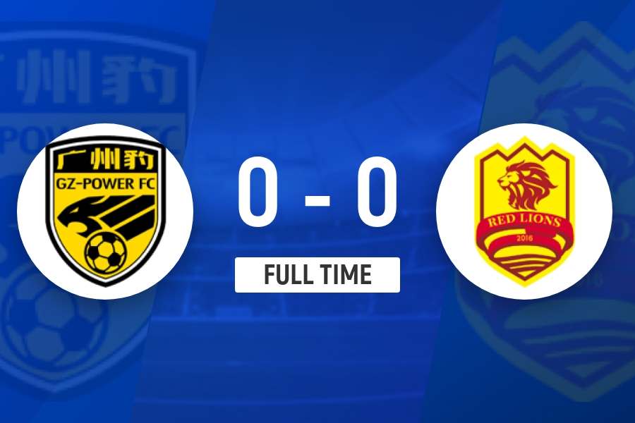 全场比赛结束,广东广州豹0-0青岛红狮。